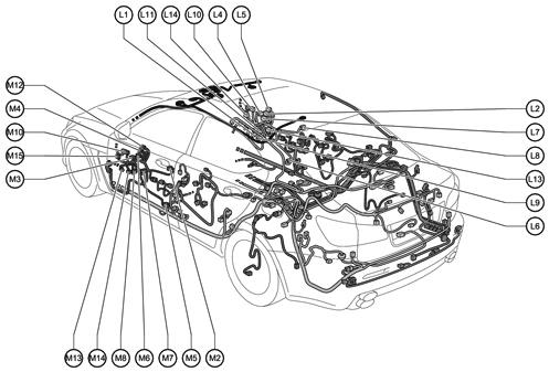 | Junction Connector (P25) | Right front of trunk. See Figure. |