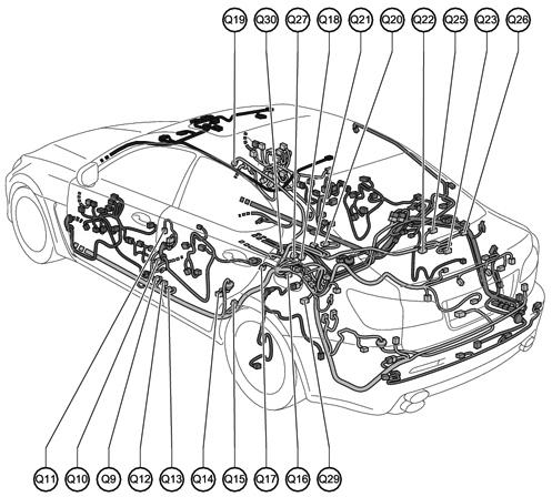 | Noise Filter (Luggage Room Lamp) (Q27) | Left side of trunk. See Figure. |