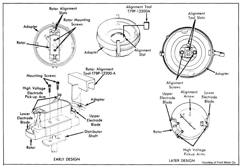 Position distributor in engine. Ensure that distributor base hold-down flange is aligned with clamp bolt hole. Slot in upper blade of rotor must be aligned with slot in adapter. If not, remove and rotate distributor as necessary. See Figure.