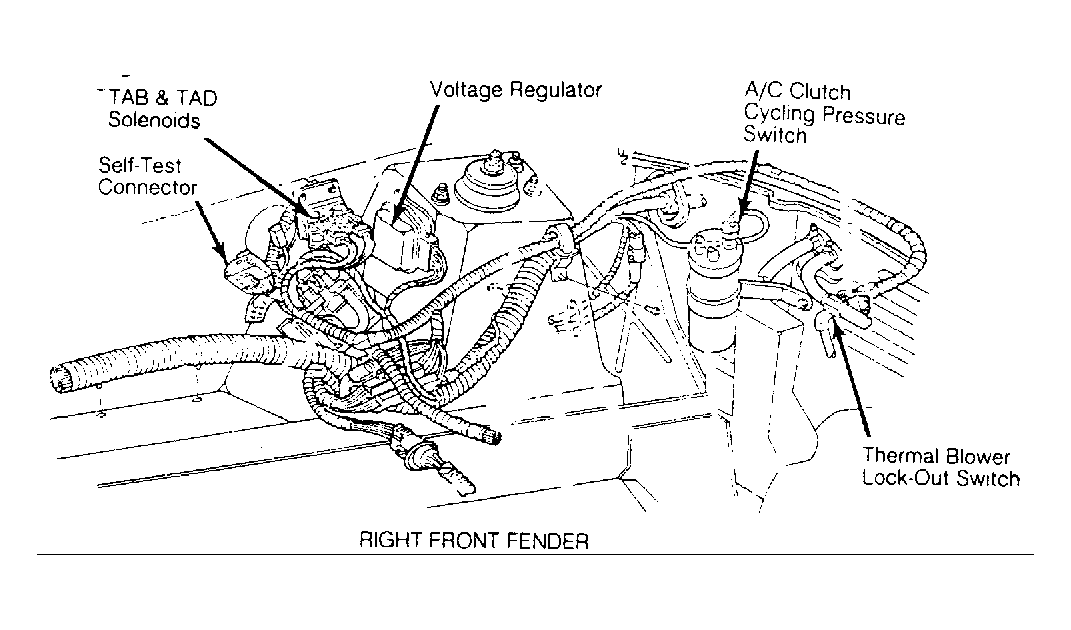 | Self-Test Connector | On right fender panel, in front of shock tower. See Figure . |