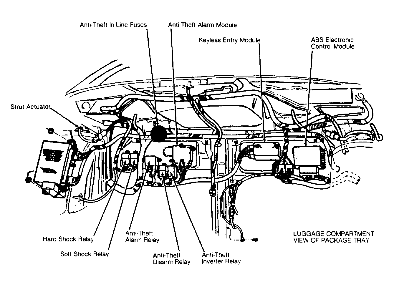 | Anti-Theft In-Line Fuses | In luggage compartment wiring harness, left of package tray. See Figure . | |