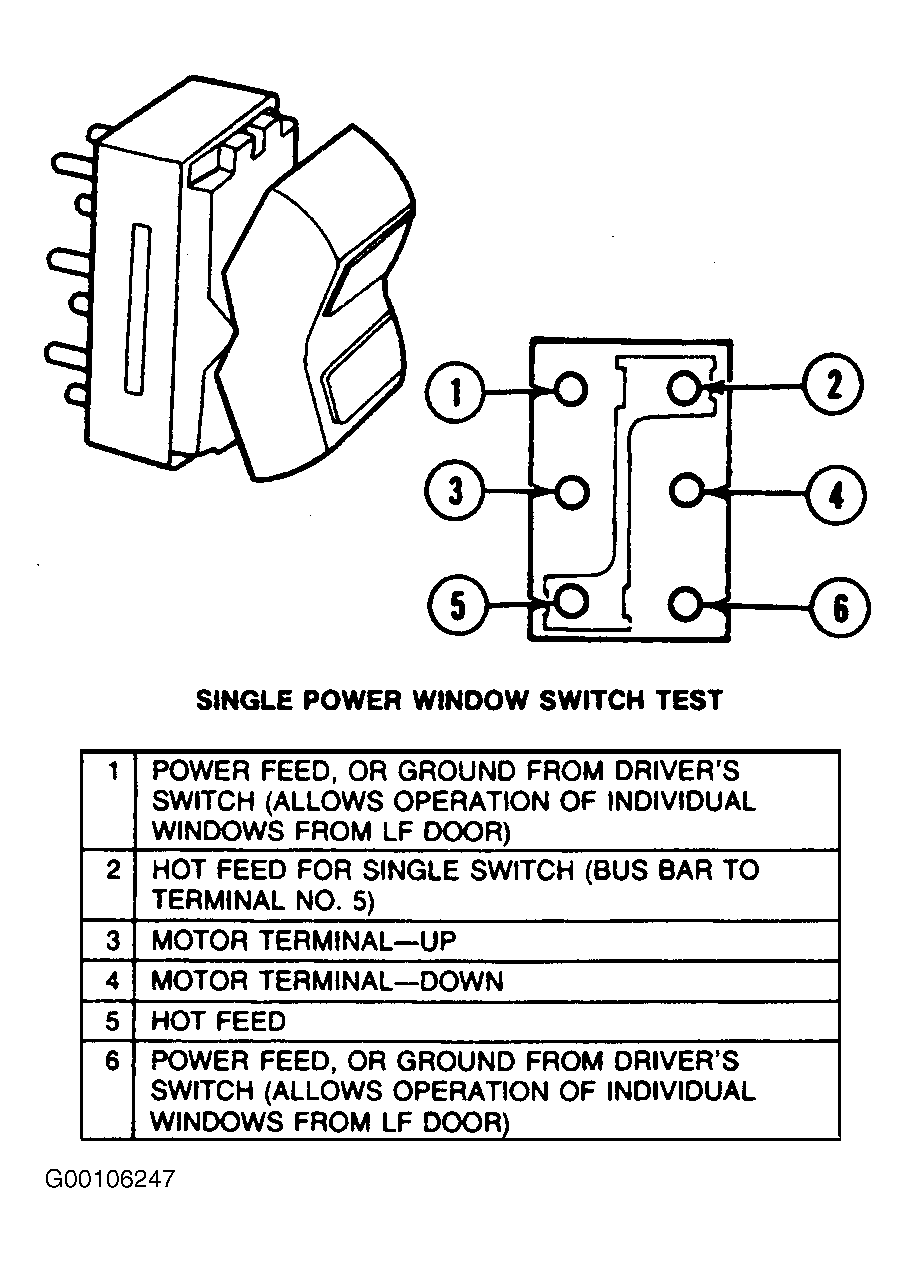 - Use a self-powered test lamp or an ohmmeter such as Rotunda Digital Volt-Ohmmeter (007-00001), or equivalent, to test the power window switch.