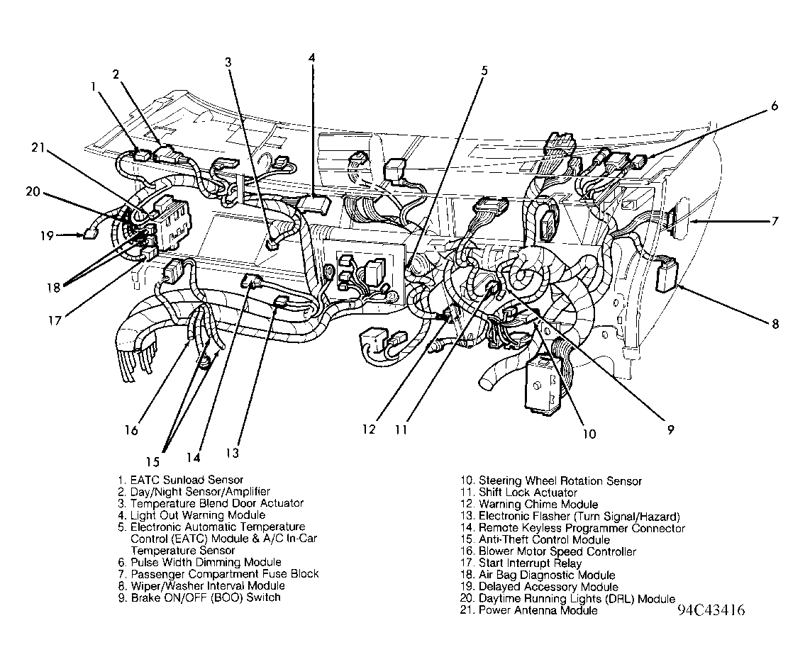 | Electronic Automatic Temperature Control (EATC) Module | Behind center of dash, below radio. See Figure . |