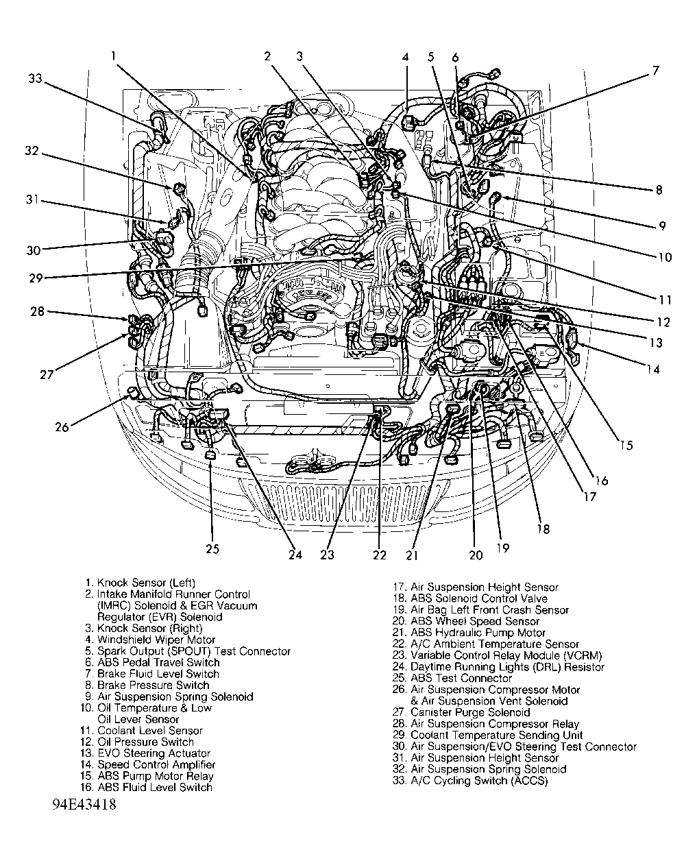 | Air Suspension/EVO Steering Module | Behind right kick panel, above connector bracket. |