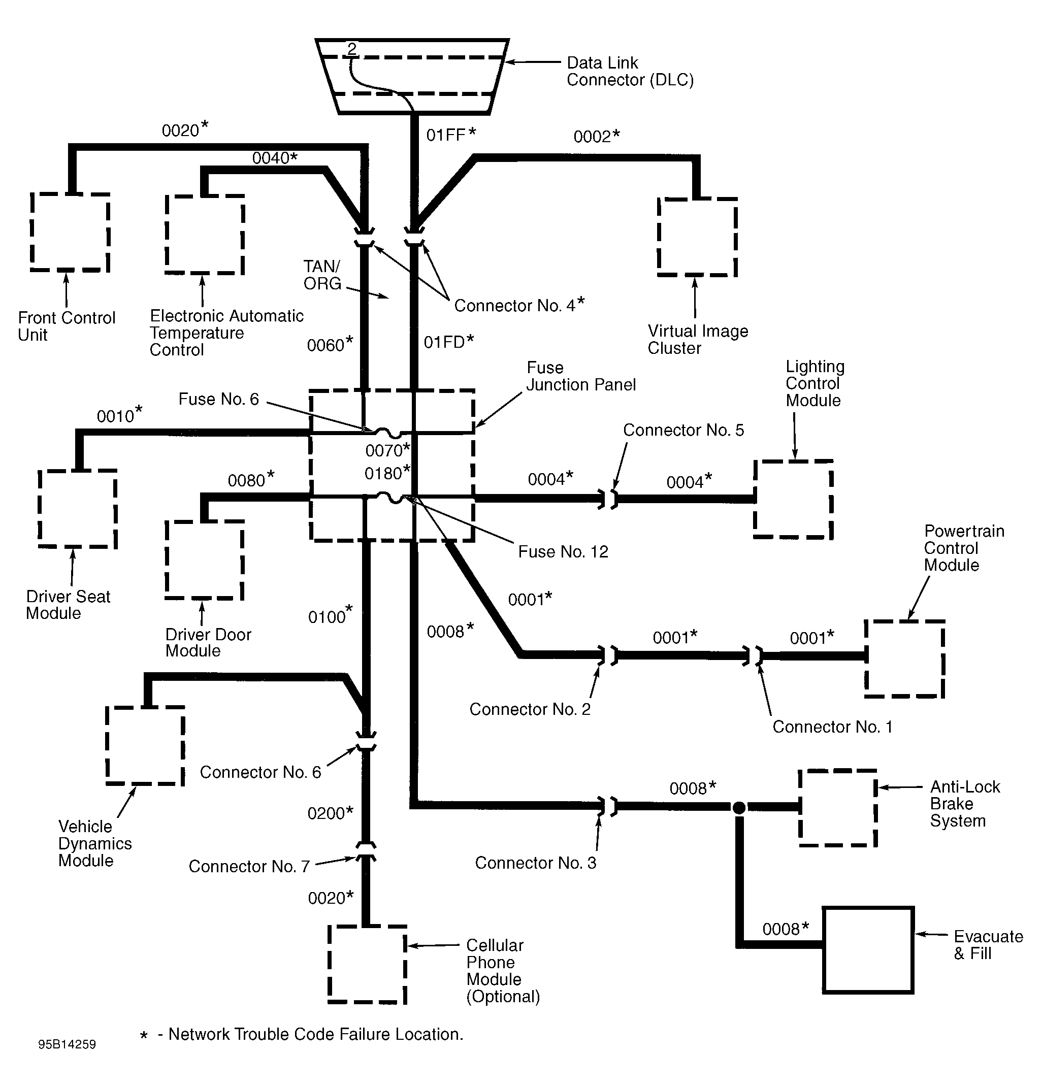 testing, the location of an open circuit in data line, or defective module can be narrowed down to expedite testing. The 4-digit failed module code indicates which branch of communication network the failure is located. See Figure