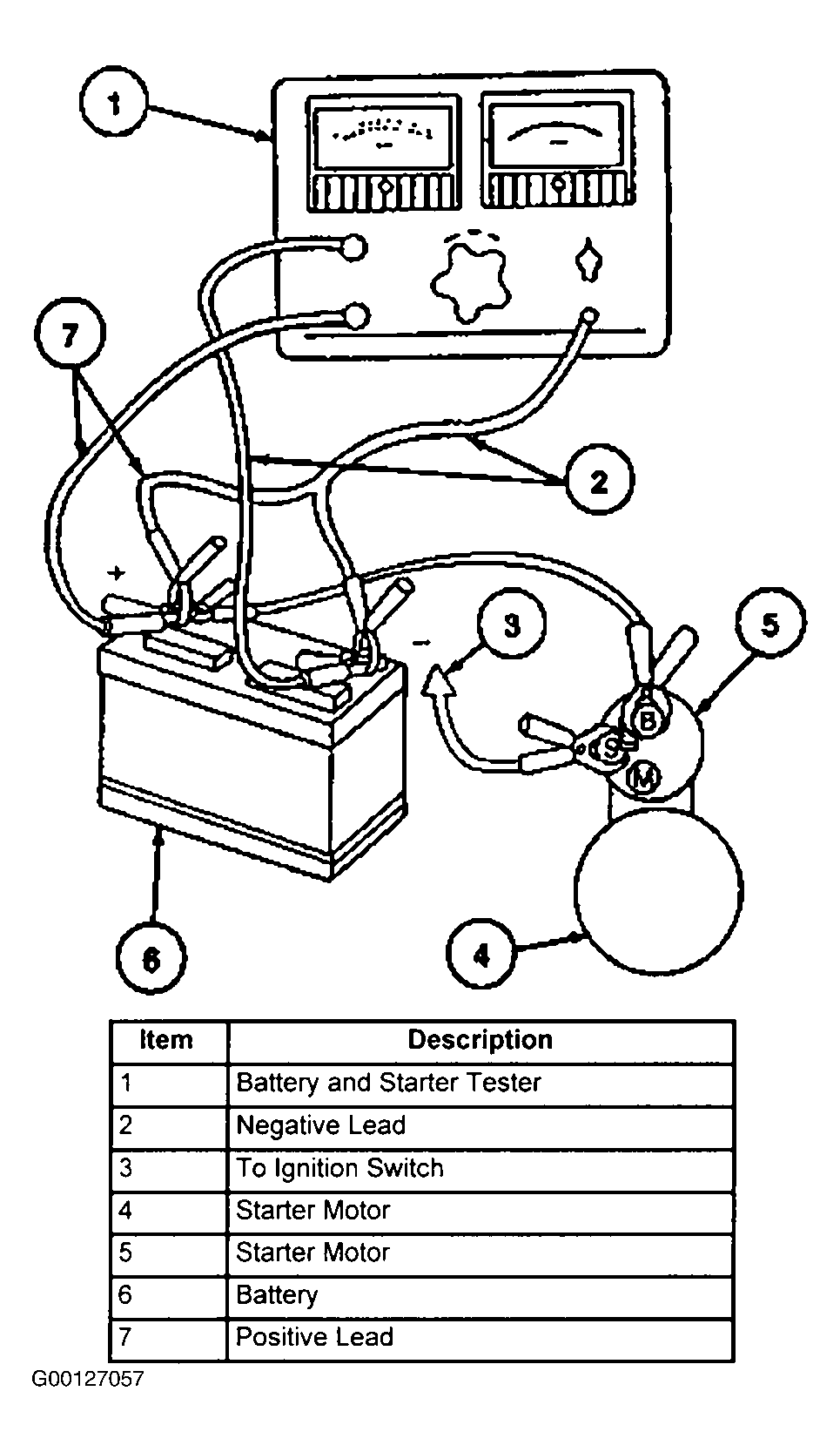 Conduct this test if the starter motor cranks slowly and also to compare the current to specifications. See STARTER SPECIFICATIONS