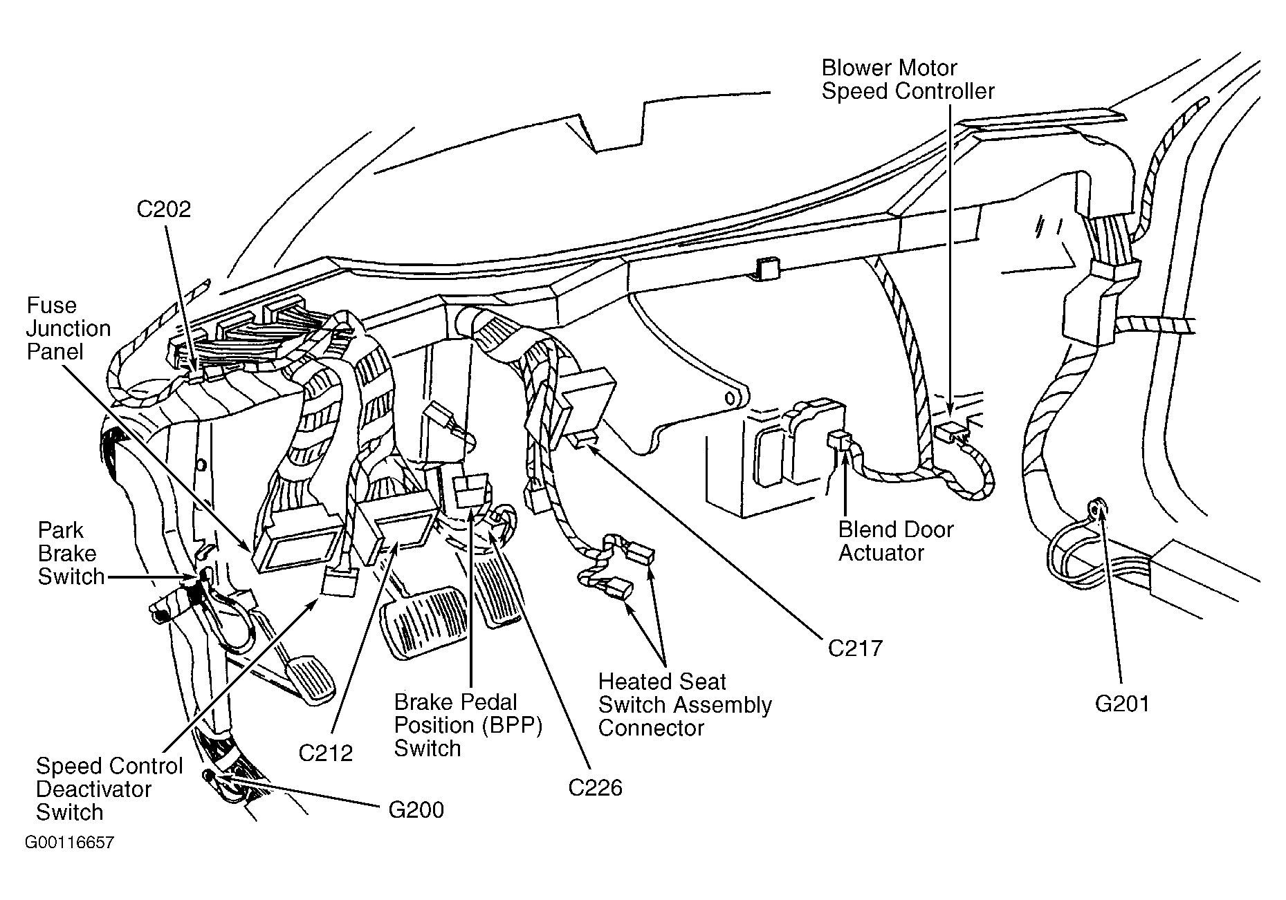 | Fuse Junction Panel | Below left side of dash. See Figure. |