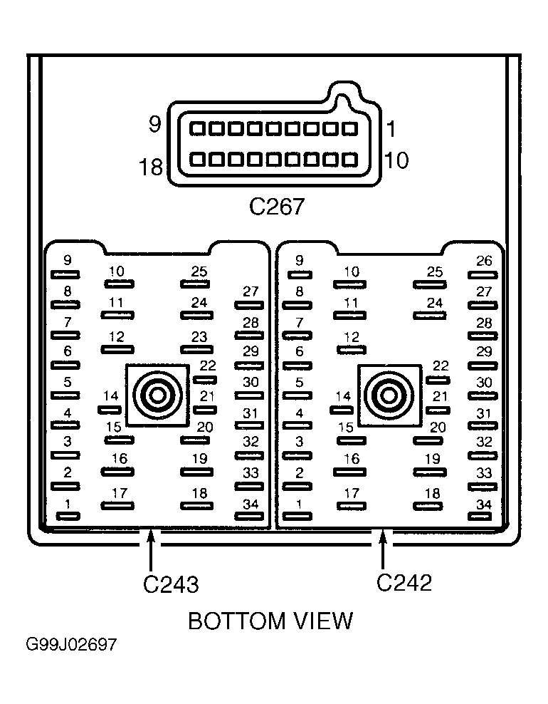 5. Disconnect GEM from CJB 18-pin harness connector C267. Measure resistance between one-touch down relay socket terminal No. 86 and CJB connector C267 terminal No. 2. See Figure and Figure . Resistance should be less than 5 ohms. Measure resistance between ground and CJB connector C267 terminal No. 2. Resistance should be 10 k/ohms or more. If resistances are as specified, replace GEM. See GENERIC ELECTRONIC MODULE (GEM)  under REMOVAL & INSTALLATION. If either resistance is not as specified, replace CJB.