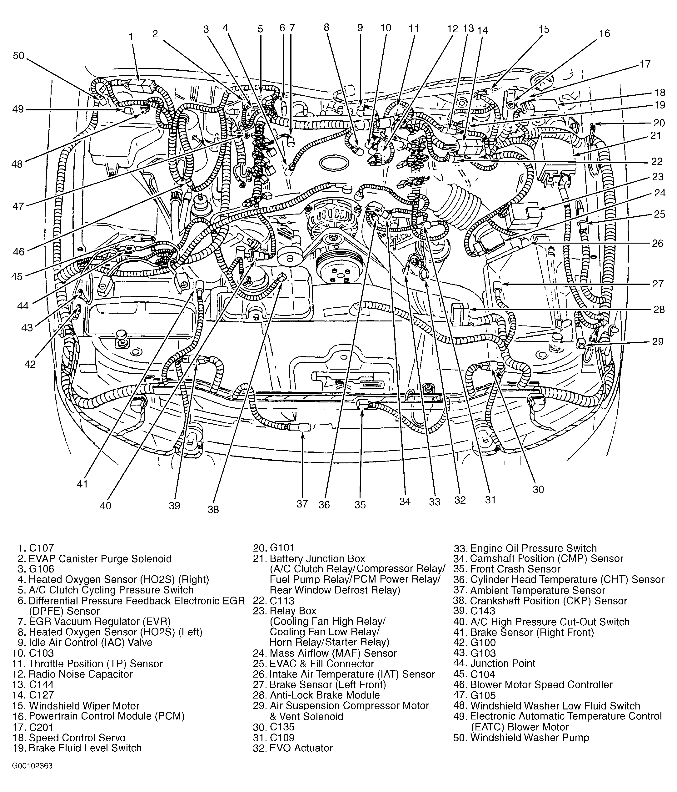 | Powertrain Control Module (PCM) | Left rear of engine compartment, on firewall. See Figure. |