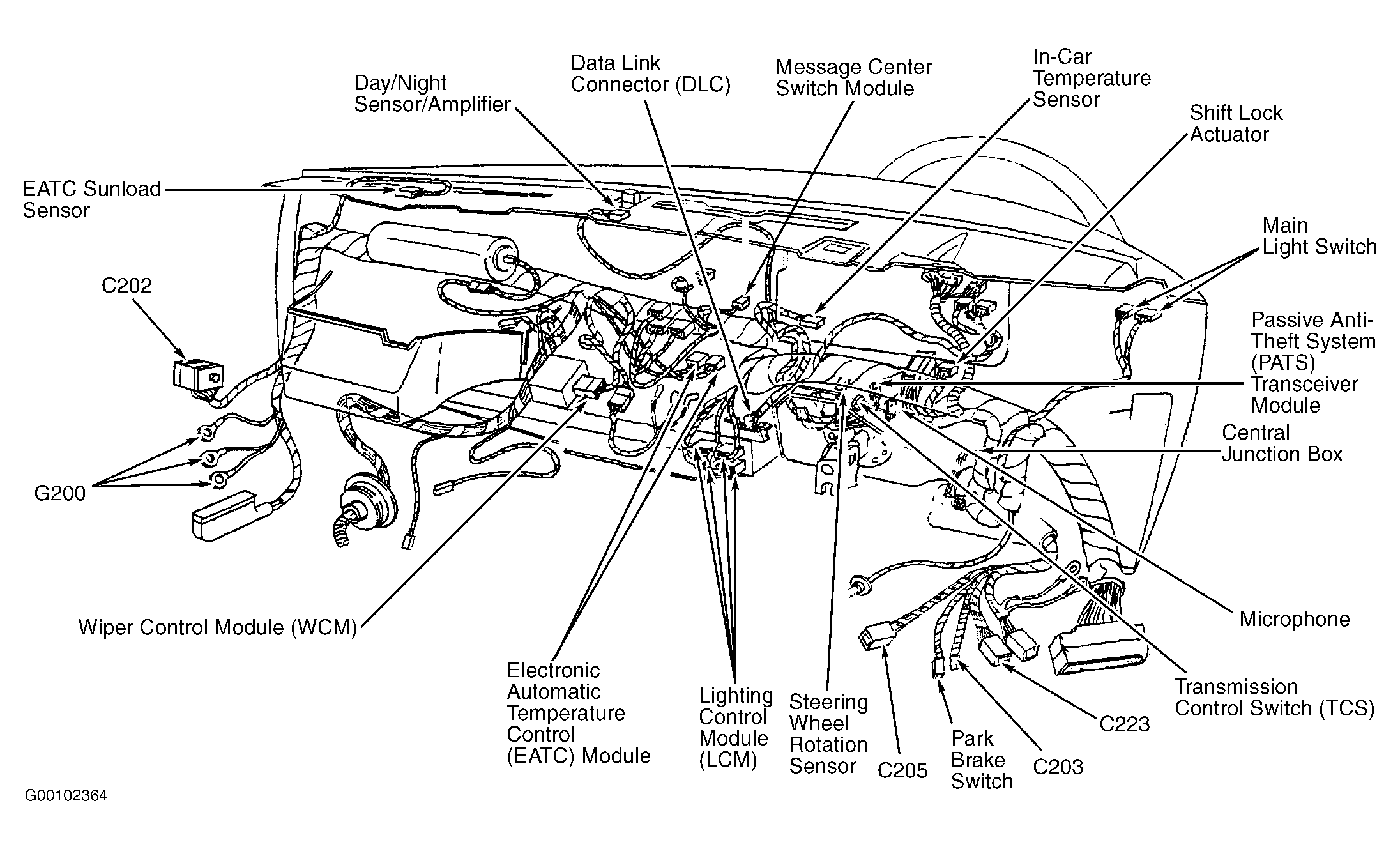 | Passive Anti-Theft System (PATS) Transceiver Module | Behind left side of dash. See Figure. |