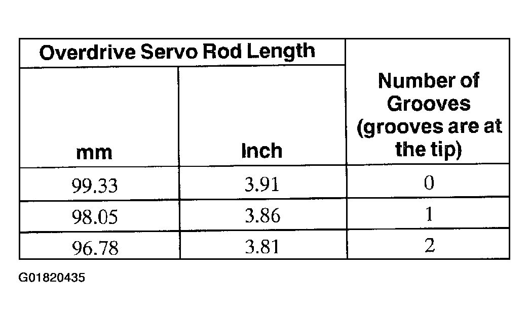 - If the overdrive servo travel was incorrect install new overdrive servo rod. Zero dial indicator and repeat the above step to verify the amount of piston travel. If within specification, remove tool and test spring.