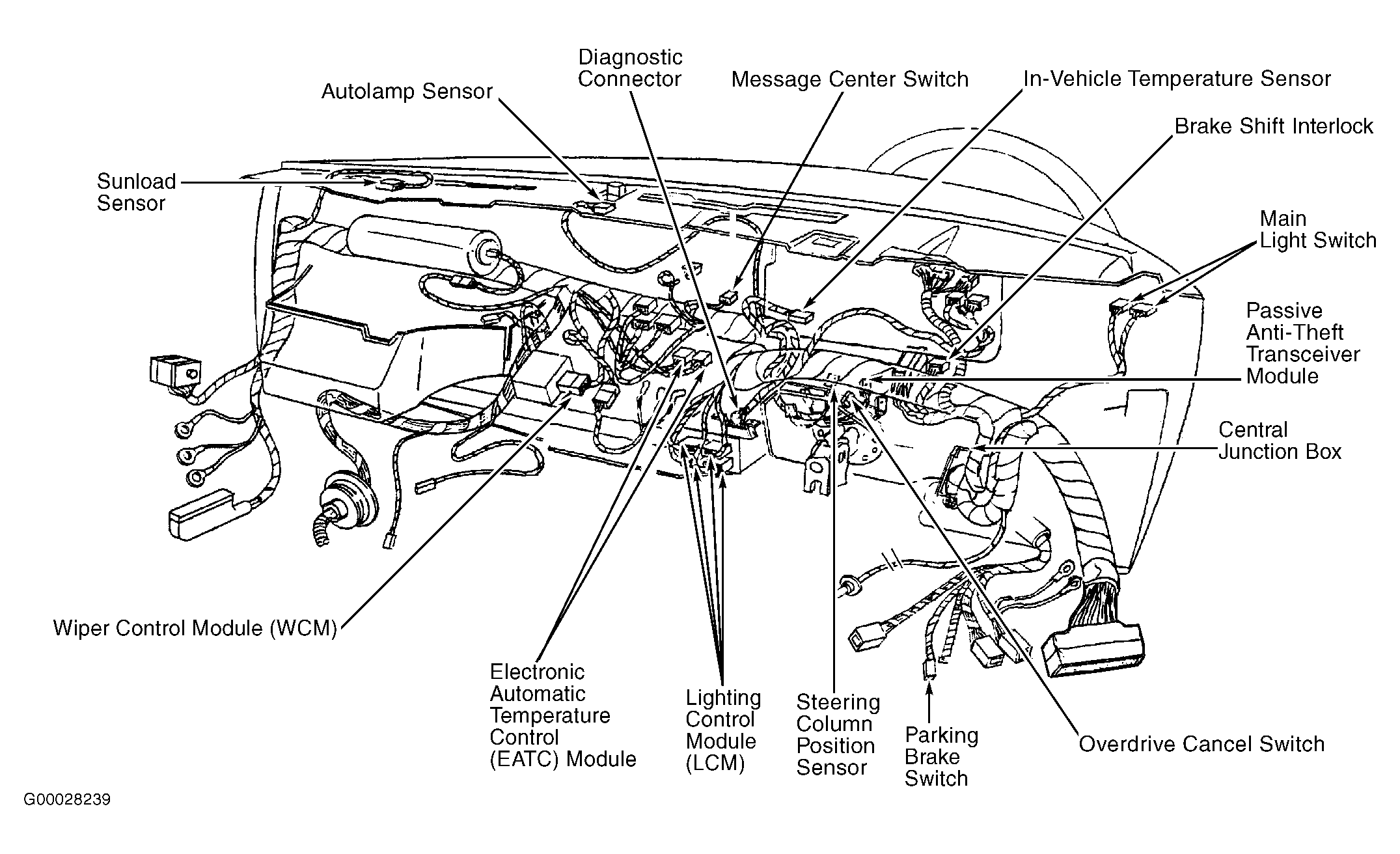| Passive Anti-Theft Transceiver Module | Behind left side of dash. See Figure. |