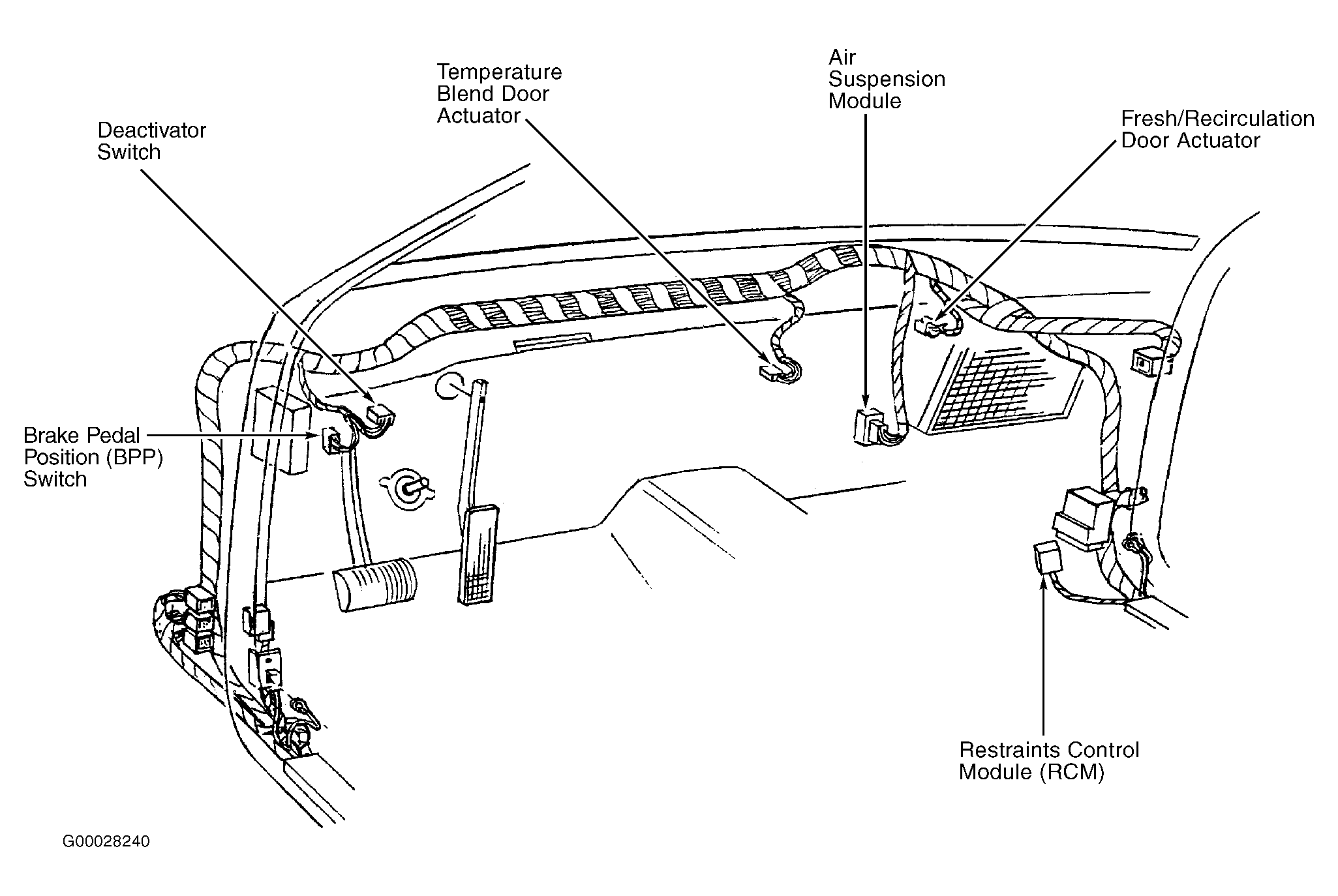 | Air Suspension Module | Behind right side of dash. See Figure. |