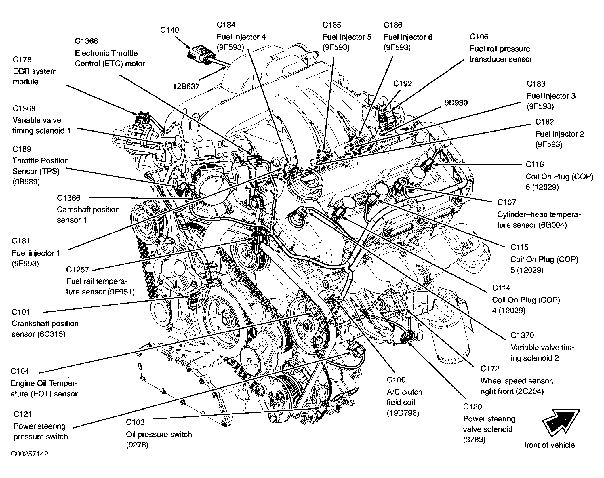 | EGR System Module (3.0L) | At upper right front of engine. See Figure. |