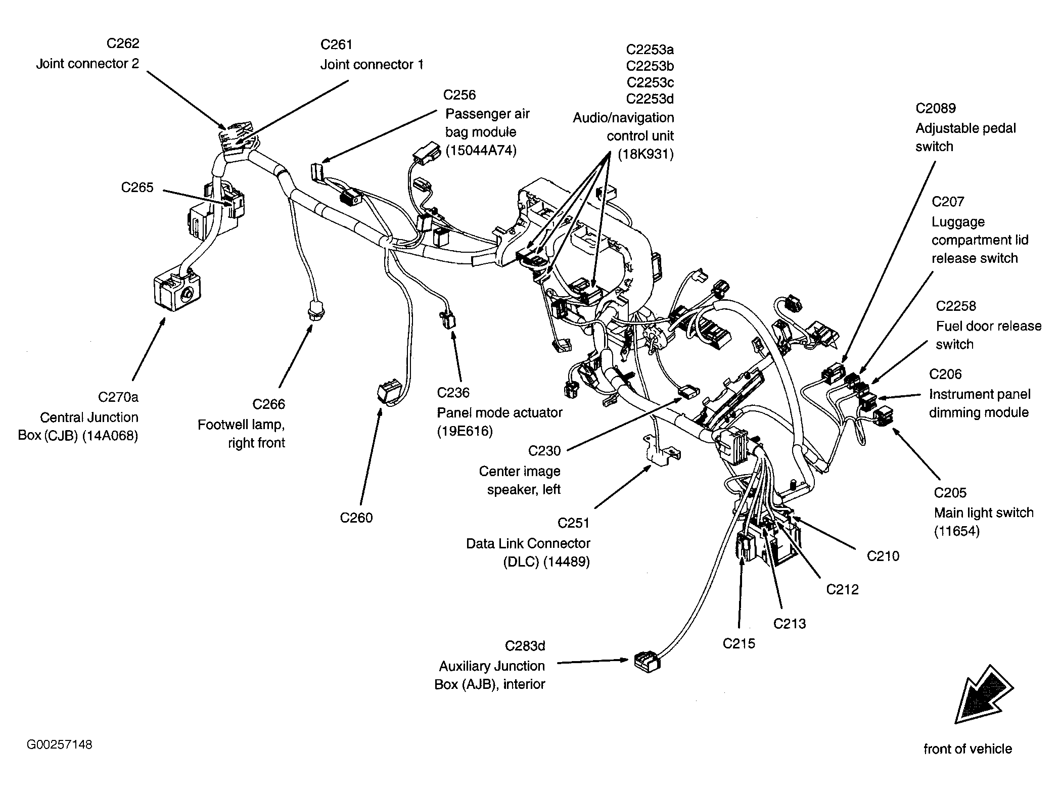 | Audio/Navigation Control Unit | Behind center of dash. See Figure. |