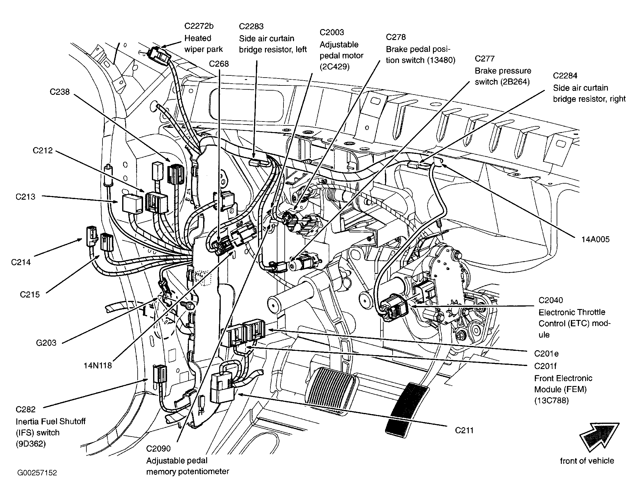 | Front Electronic Module (FEM) | On left kick panel. See Figure. |