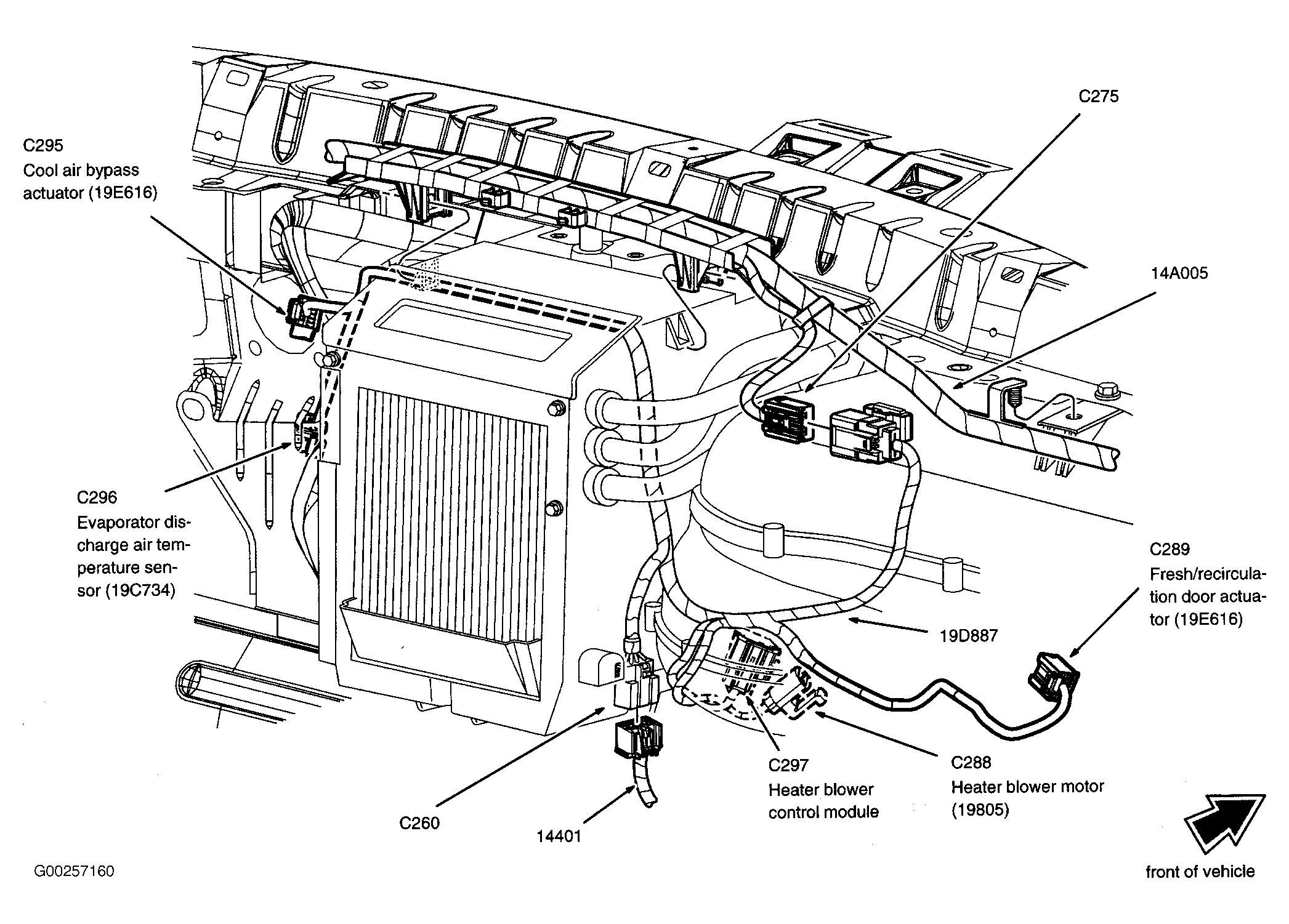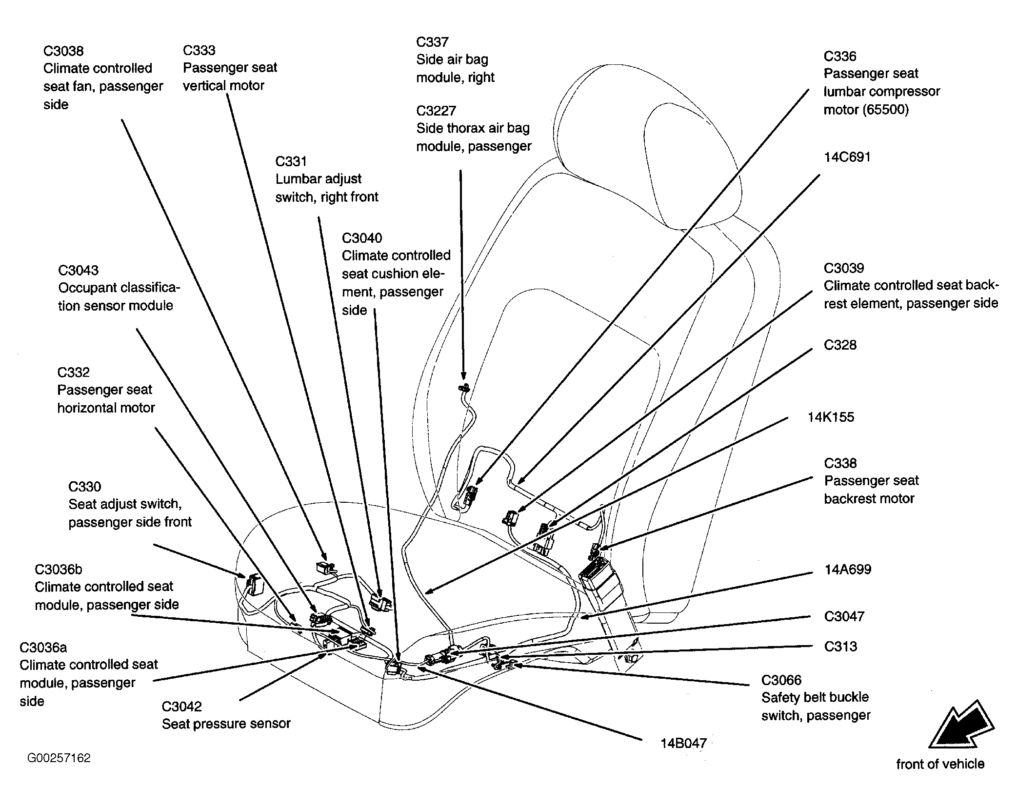 | Climate Controlled Seat Module (Passenger Side) | Under right front seat. See Figure. |