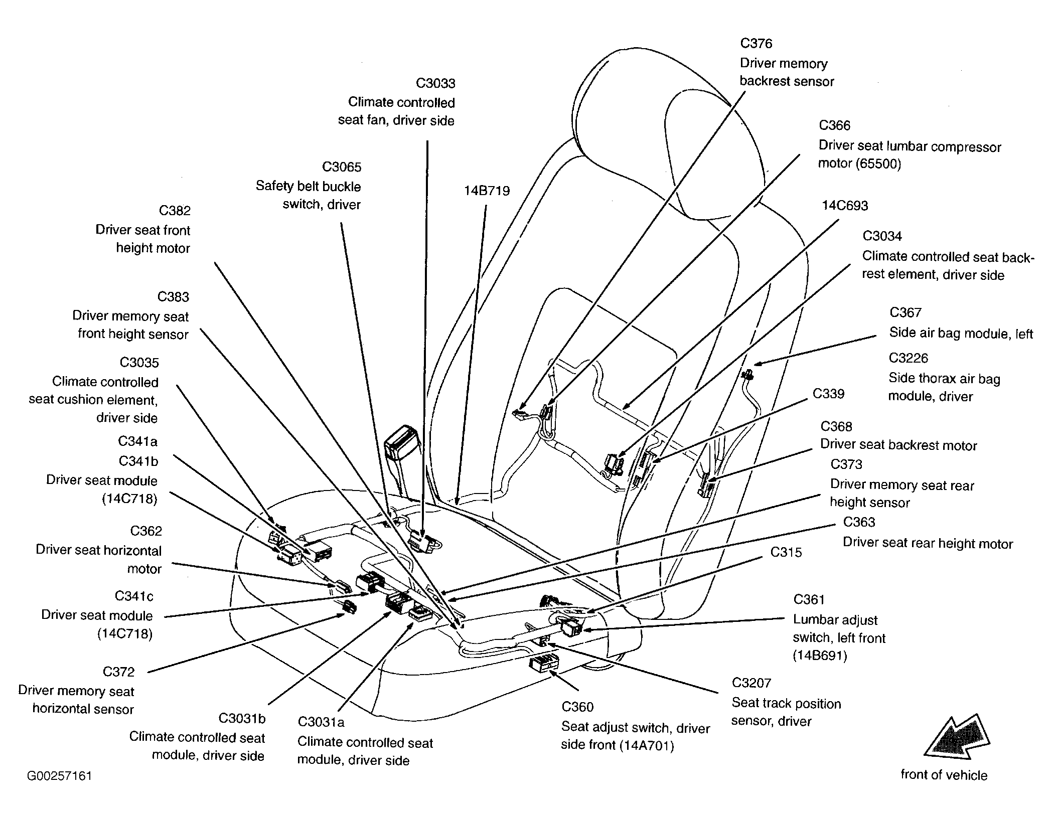 | Climate Controlled Seat Module (Driver Side) | Under driver's seat. See Figure. |