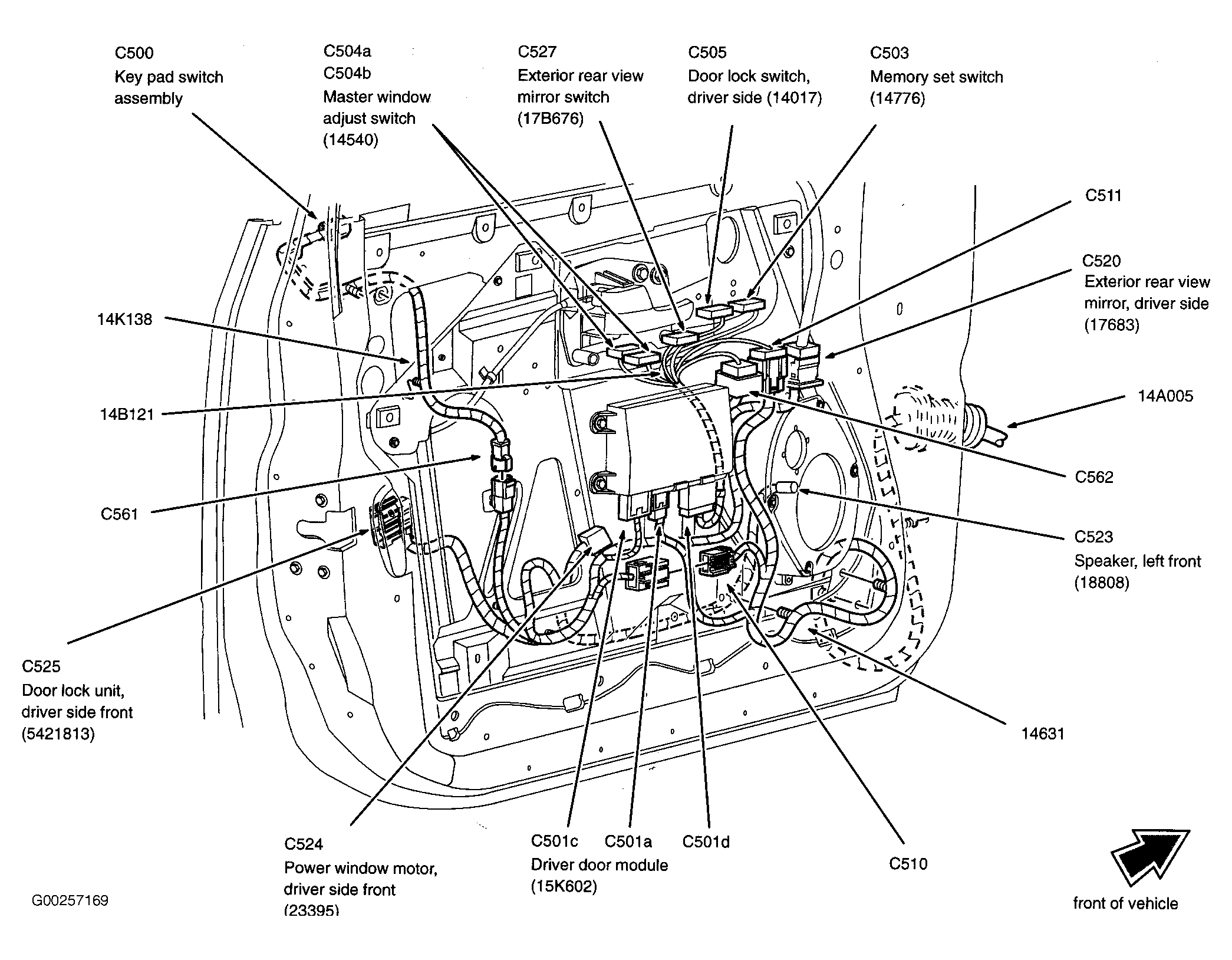| Driver Door Module | In driver's door. See Figure. |