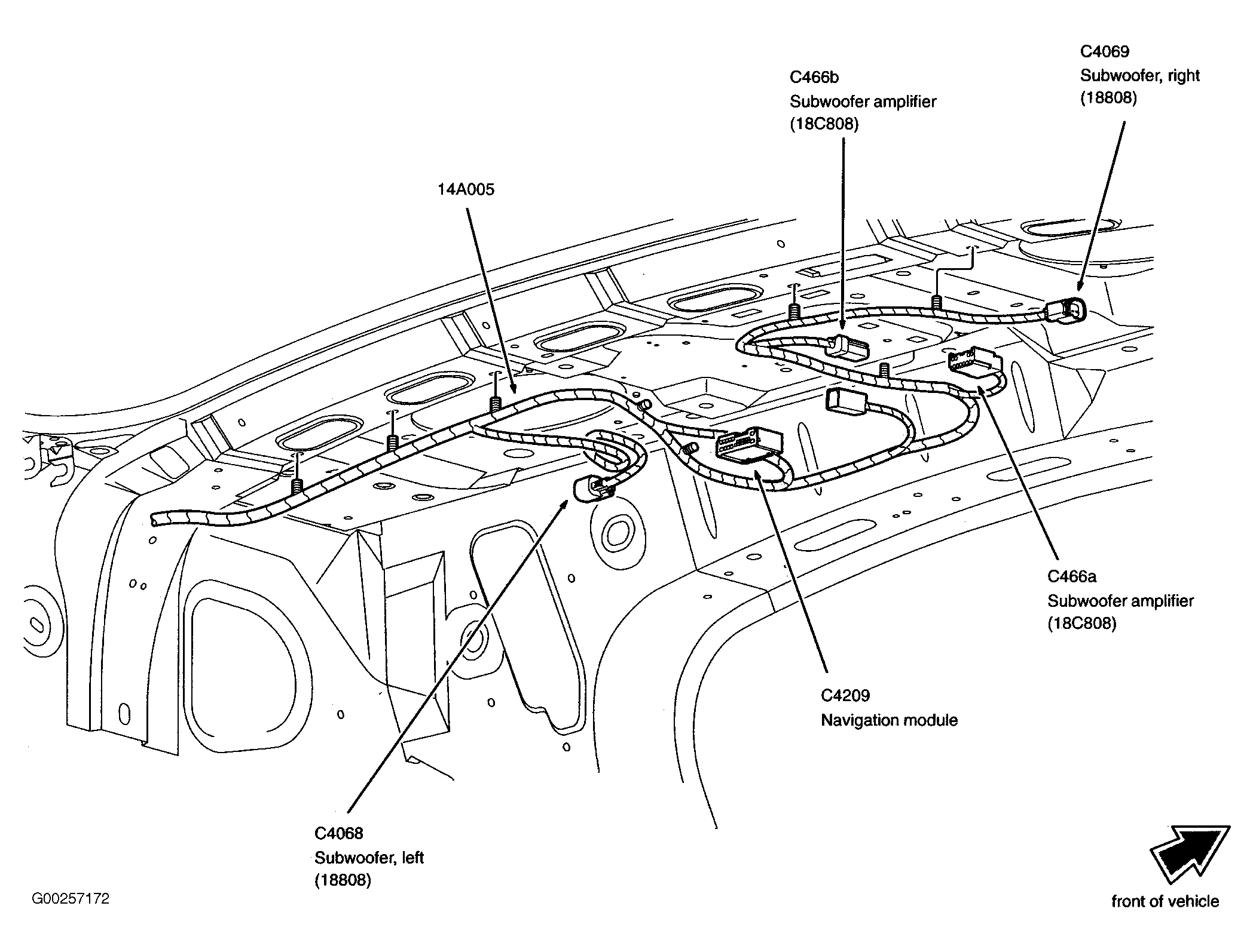 | Parking Aid Module (PAM) | On left rear of package tray. See Figure. |