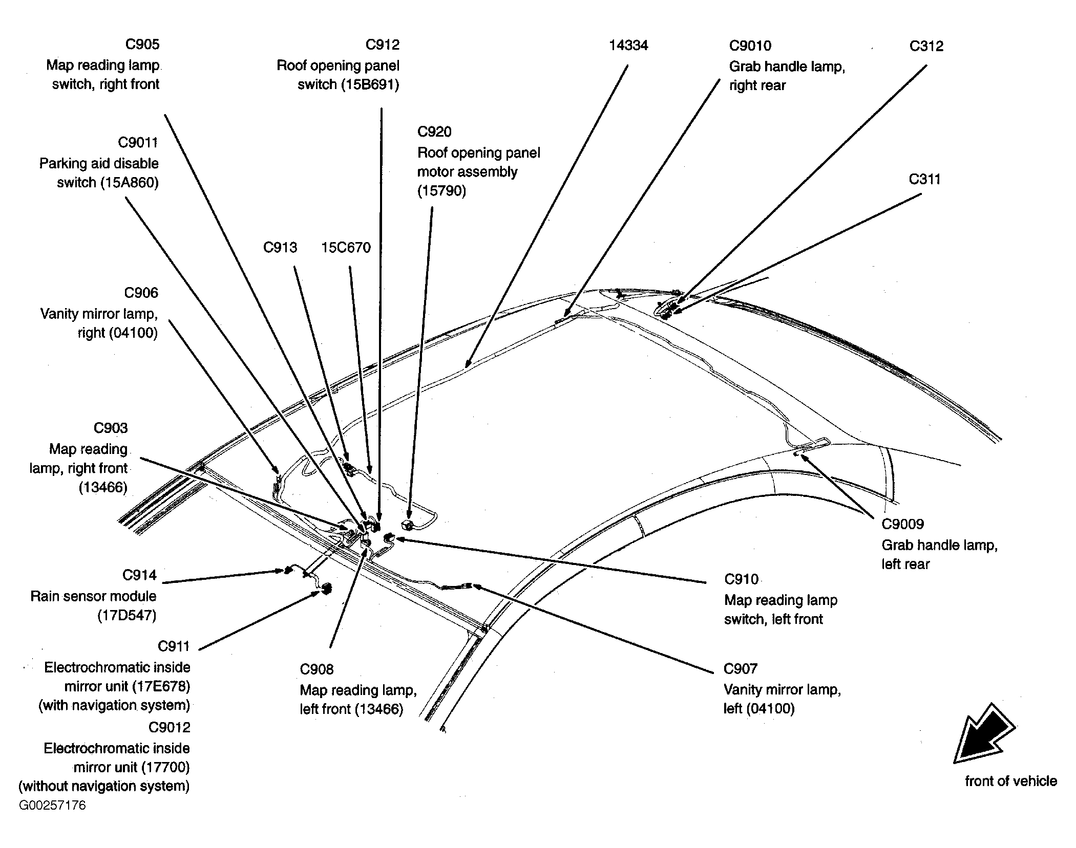 | Rain Sensor Module | In roof panel. See Figure. |