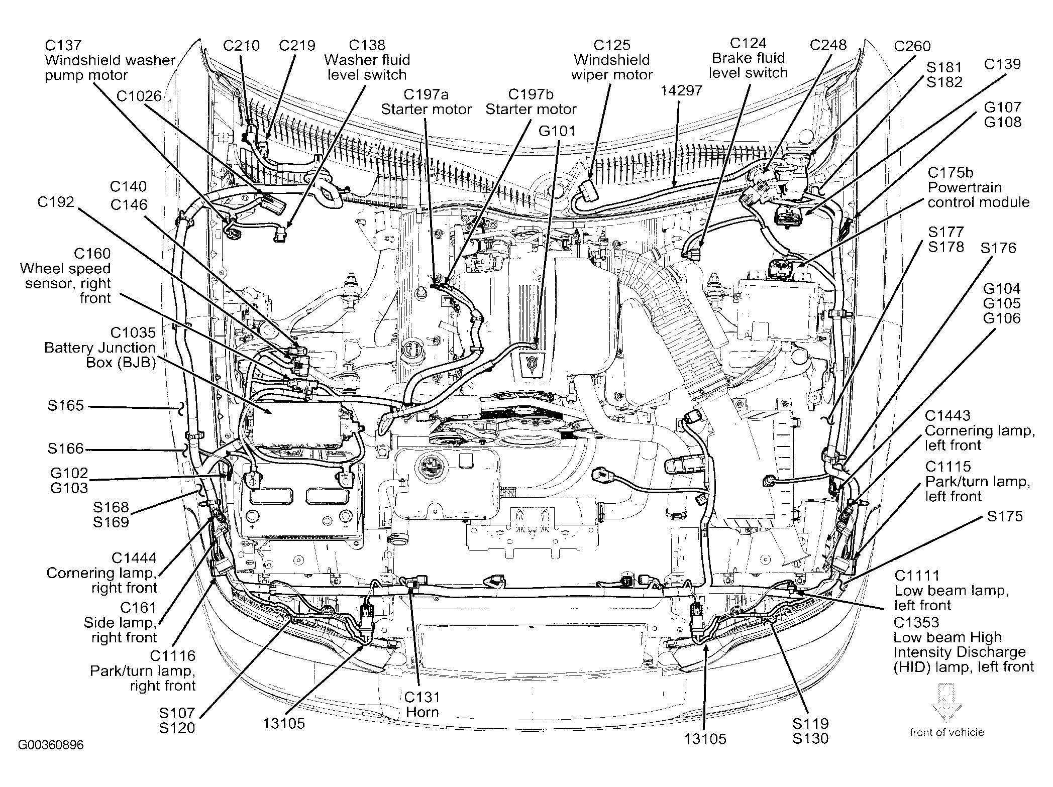 | Powertrain Control Module | Left rear side of engine compartment. See Figure . |