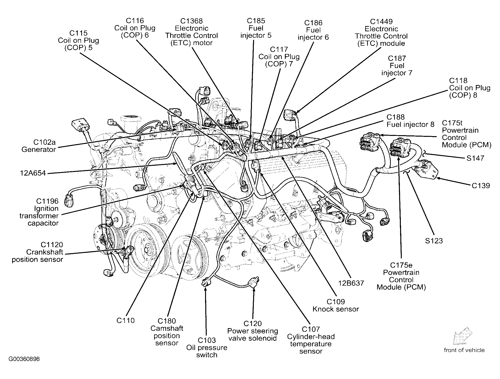 | Electronic Throttle Control (ECT) Module | Top left rear of engine. See Figure . |