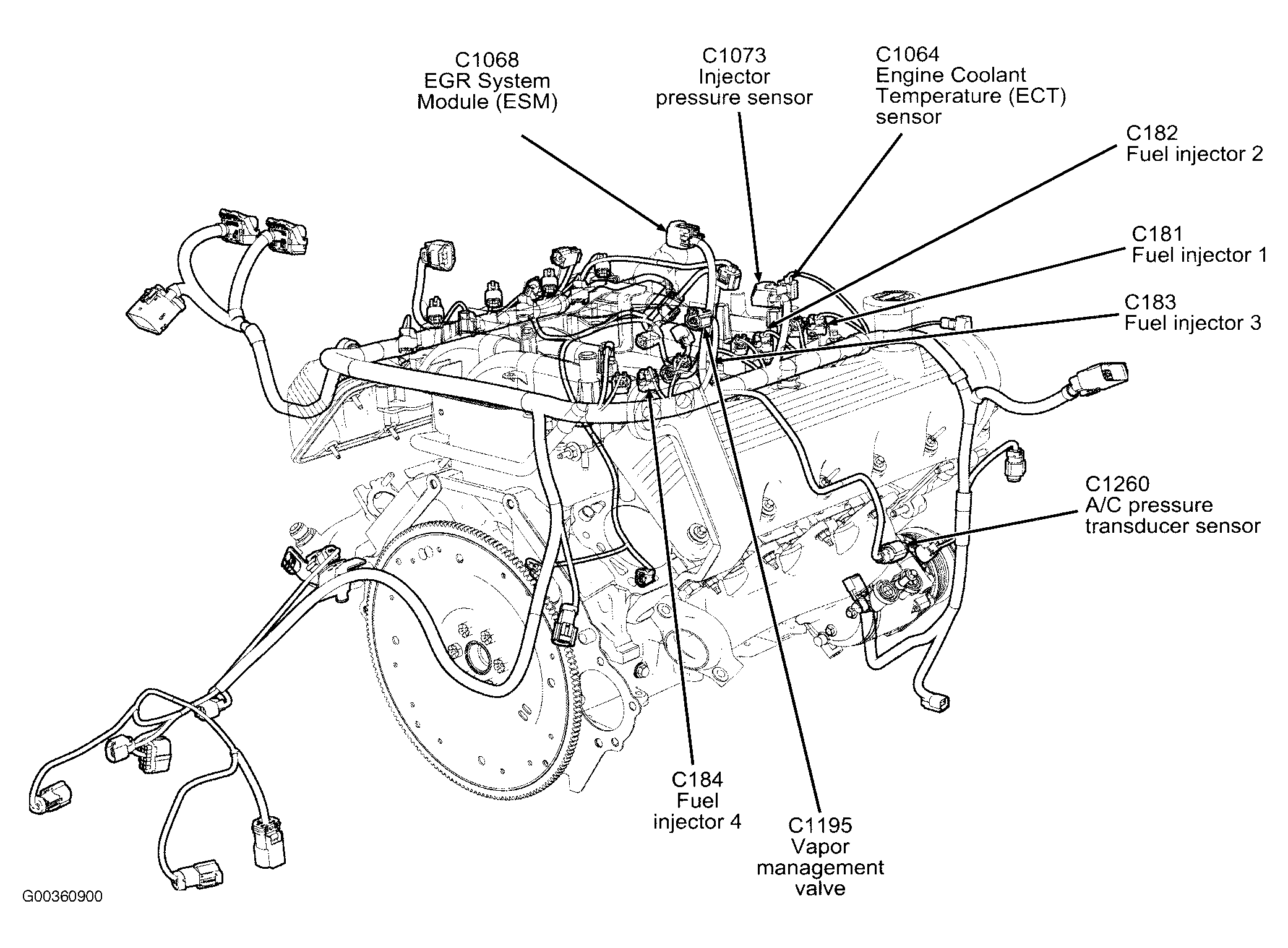 | EGR System Module (ESM) | Top of engine. See Figure . |