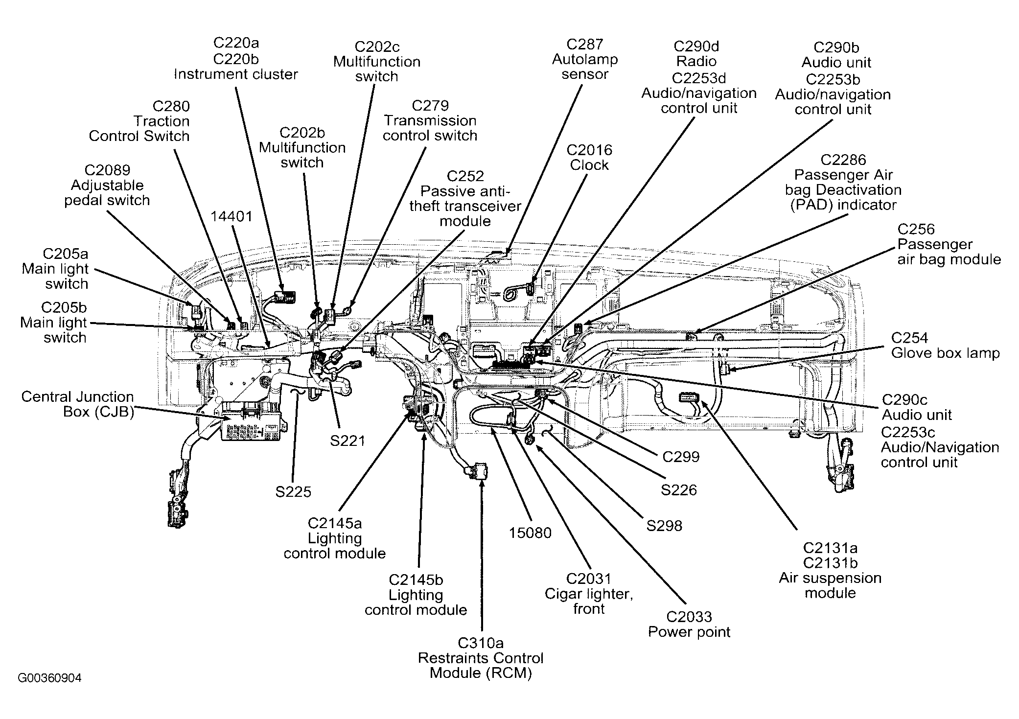 | Audio/Navigation Control Unit | Behind center of dashboard. See Figure . |