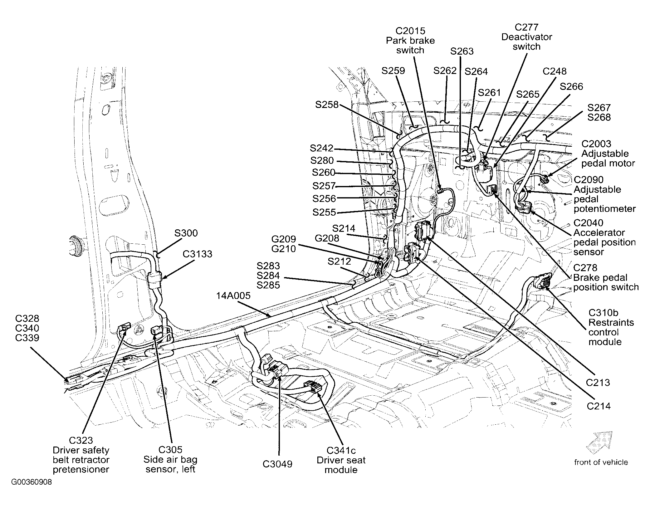 | Restraints Control Module | At center floor pan. See Figure . |