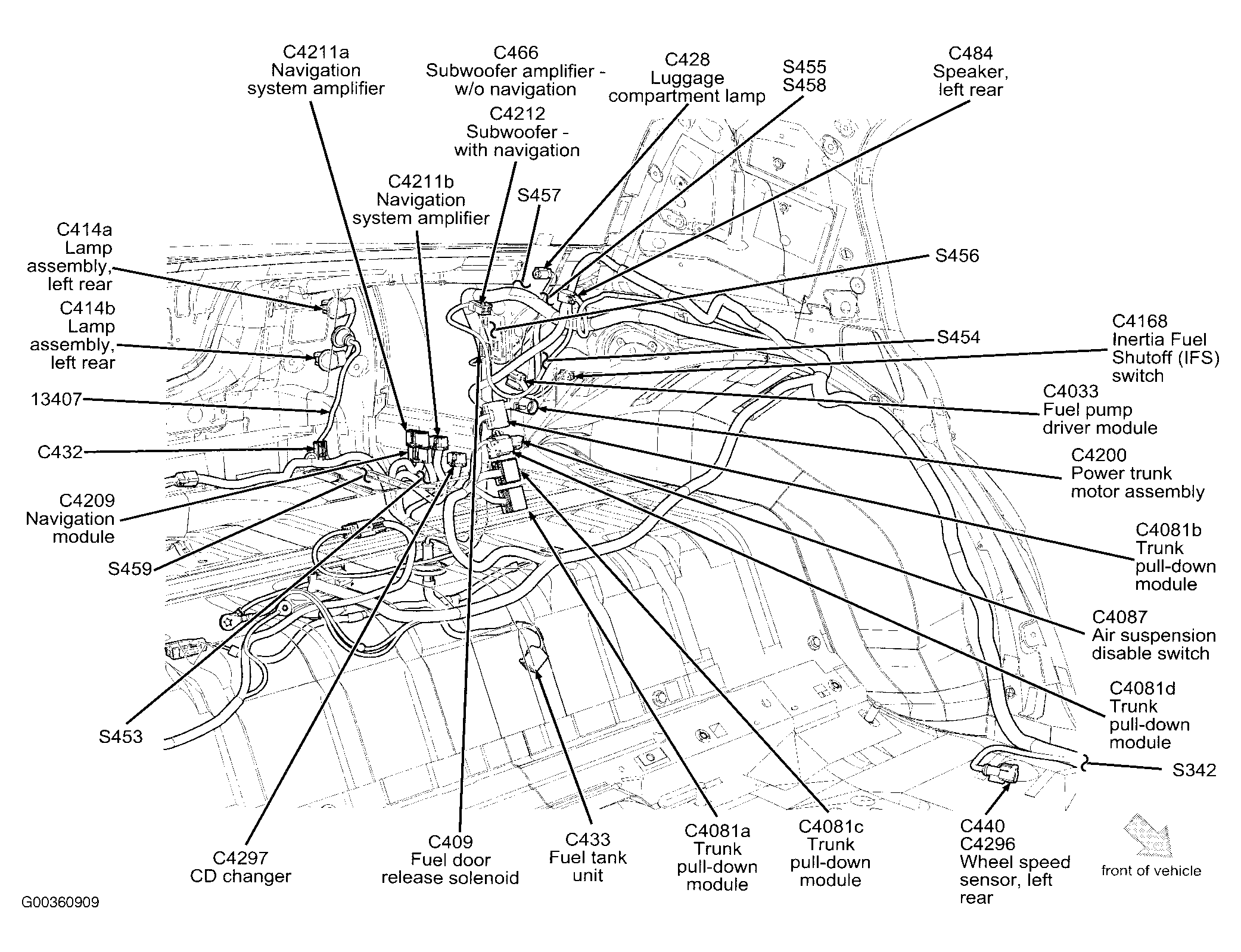 | Navigation Module | Center of trunk. See Figure . |