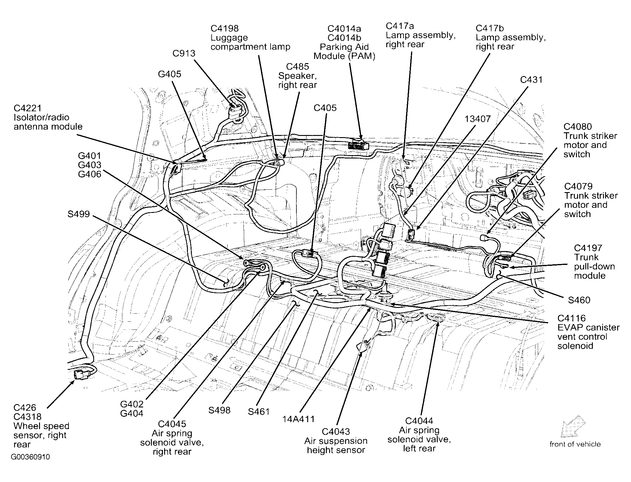 | Parking Aid Module (PAM) | At right side of trunk. See Figure . |