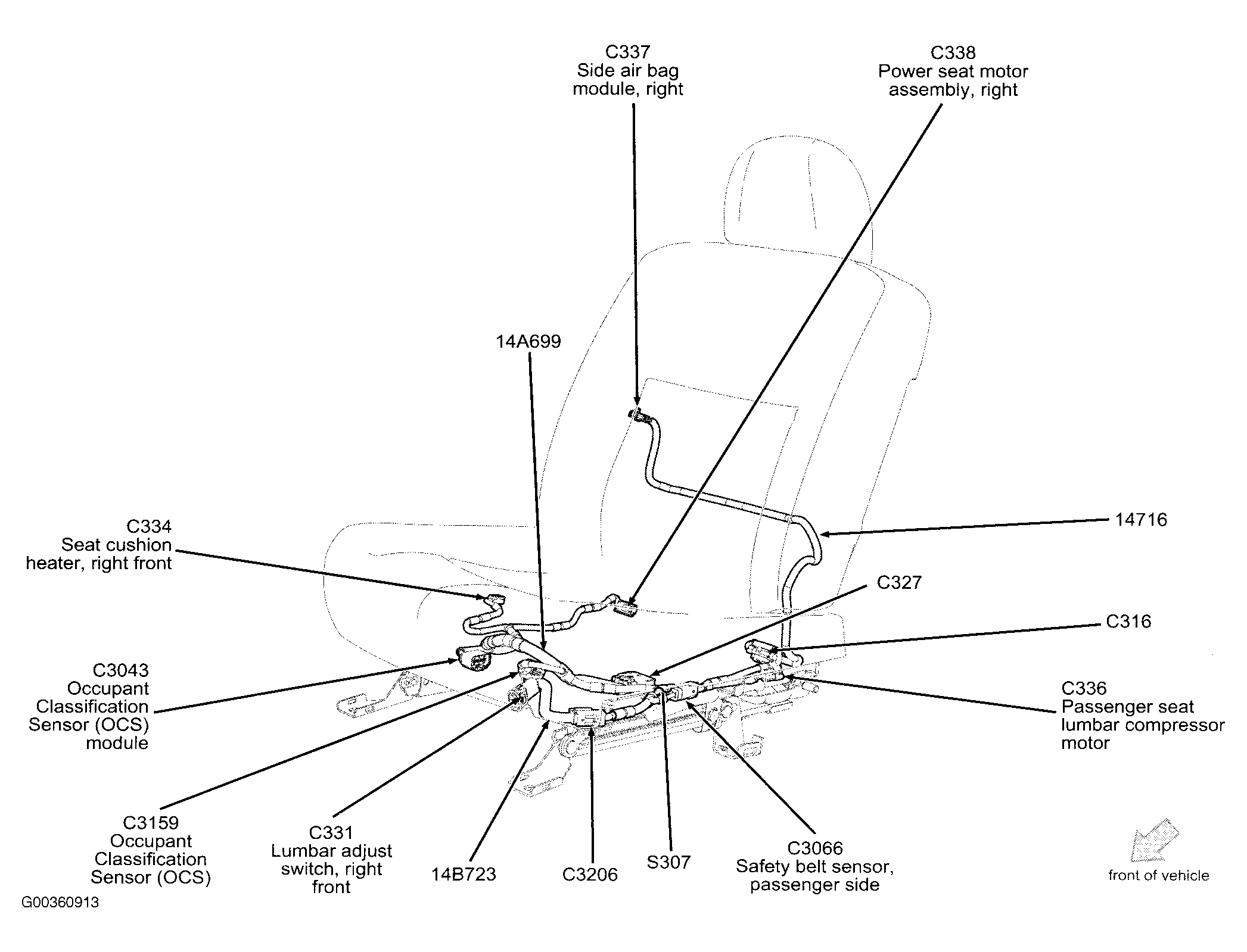 | Occupant Classification Sensor Module | In passenger's seat. See Figure . |