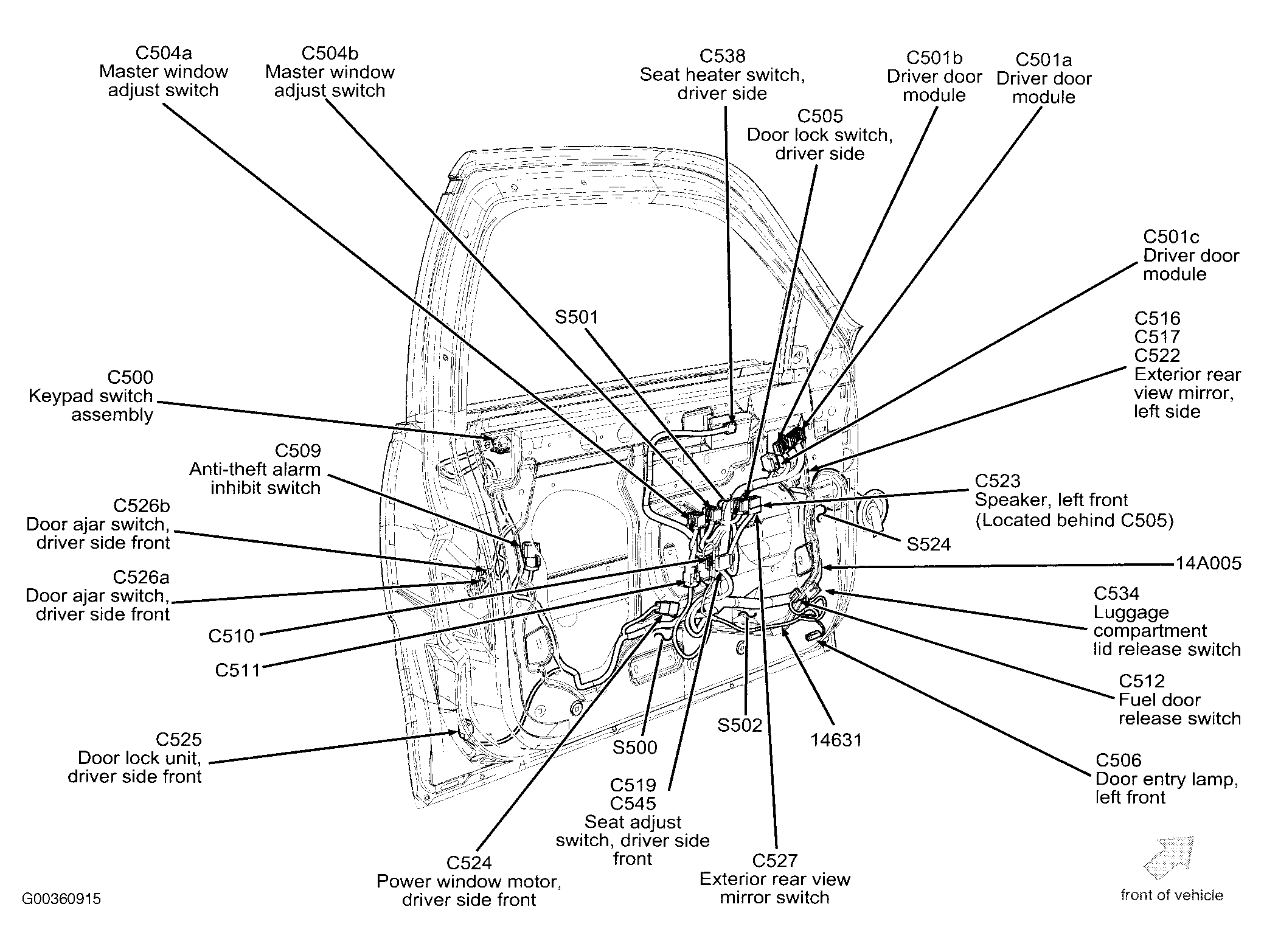 | Door Lock Unit, Driver Side Front | Bottom rear of driver's door. See Figure . |