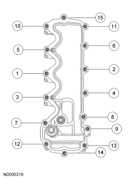 Stage 1: Tighten fasteners 1 through 15 to 25 N.m (18 lb-ft).