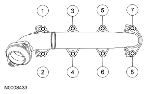 Stage 2: Tighten fasteners 6 and 7 to 48 N.m (35 lb-ft).