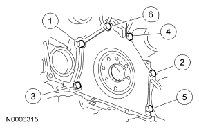 - Install the crankshaft rear seal retainer plate and loosely install the 6 bolts.