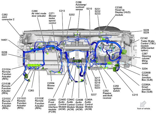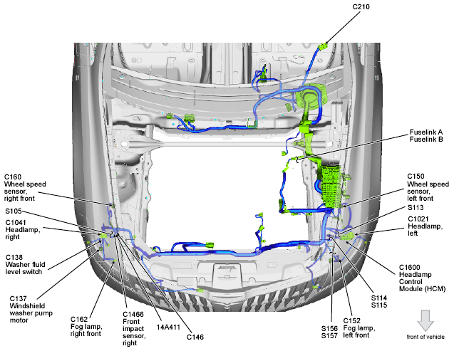 | Headlamp Control Module (HCM) | Behind left headlight assembly. See Figure. |