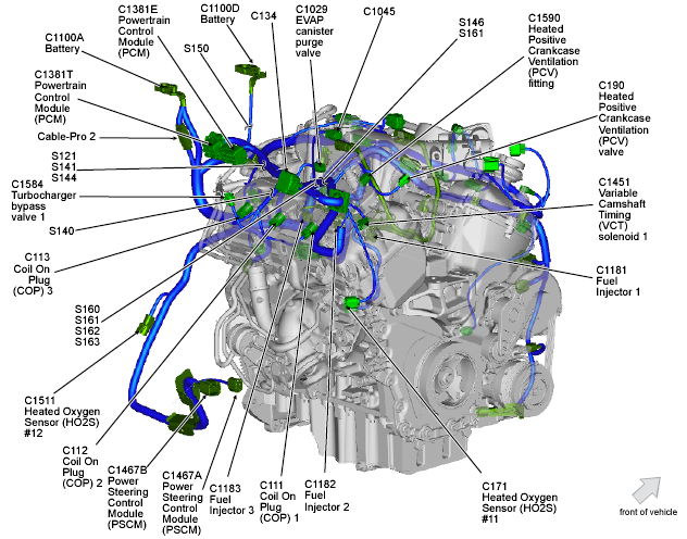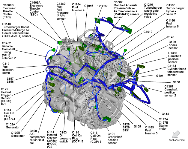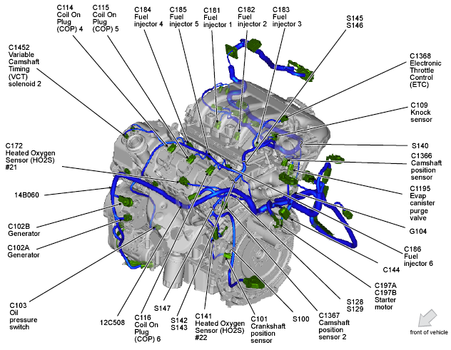 | Electronic Throttle Control (ETC) (3.5L) | Top front of engine. See Figure. |