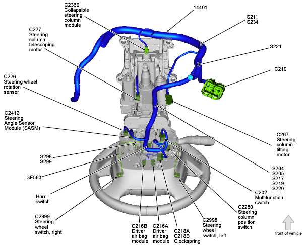 | Steering Angle Sensor Module (SASM) | Top of steering column. See Figure. |
