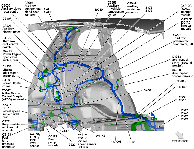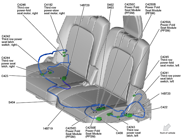 | Power Fold Seat Module (PFSM) | Under left third row seat. See Figure. |