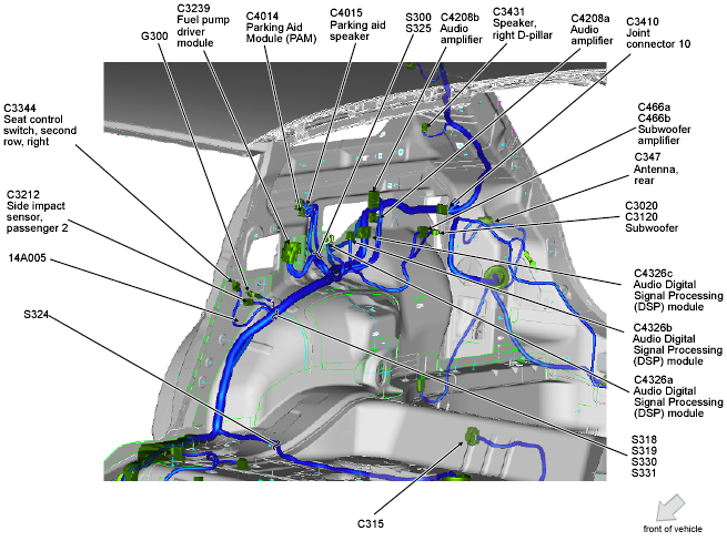 | Audio Digital Signal Processing (DSP) Module | Right quarterpanel. See Figure. |