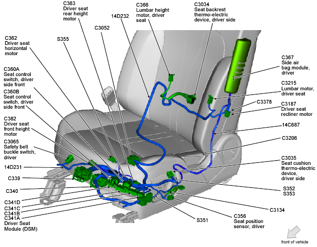 | Seat Module (DSM) (Driver) | Under driver's seat. See Figure. |