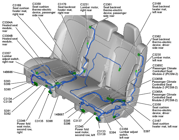 | Heated Seat Module (Rear) | Under right second row seat. See Figure. |