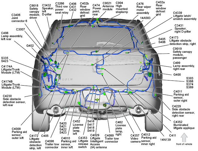 | Parking Aid Module (PAM) | Right "C" pillar. See Figure. |