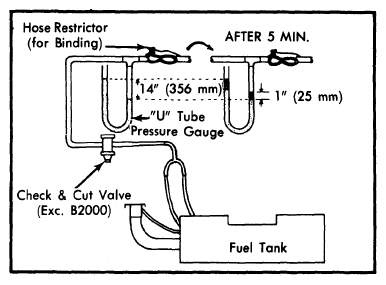 - Disconnect evaporative hose from canister. Connect detached hose to a "U" tube type pressure gauge filled with water. See Fig 1.