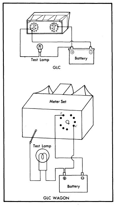 Remove instrument panel from dashboard. Remove speedometer glass and connect test lamp and battery. See Fig 1. When speedometer needle indicates less than 63 MPH, test lamp should glow. When speedometer needle indicates more than 63 MPH, lamp should not glow. If not, replace vehicle speed switch.