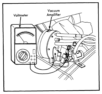 - Warm engine to normal operating temperature. Connect voltmeter to electrical connectors as shown in Fig 1. Increase engine speed to 1500 RPM, then slowly decrease engine speed. Record speed at which current flows to circuit.