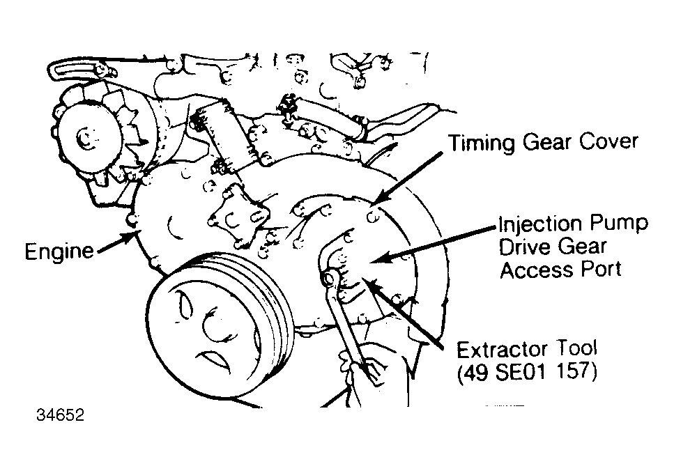 - Scribe an alignment mark on injection pump mounting flange and timing gear housing for reassembly reference. Disconnect battery negative cable, accelerator cable, cold start device cable, and the fuel cut valve connector.