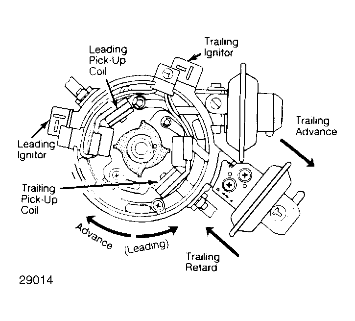 - To adjust trailing timing, loosen the screws securing the trailing vacuum unit. Move the vacuum unit outward (to advance) or inward (to retard). Retighten screws when correct timing is obtained.